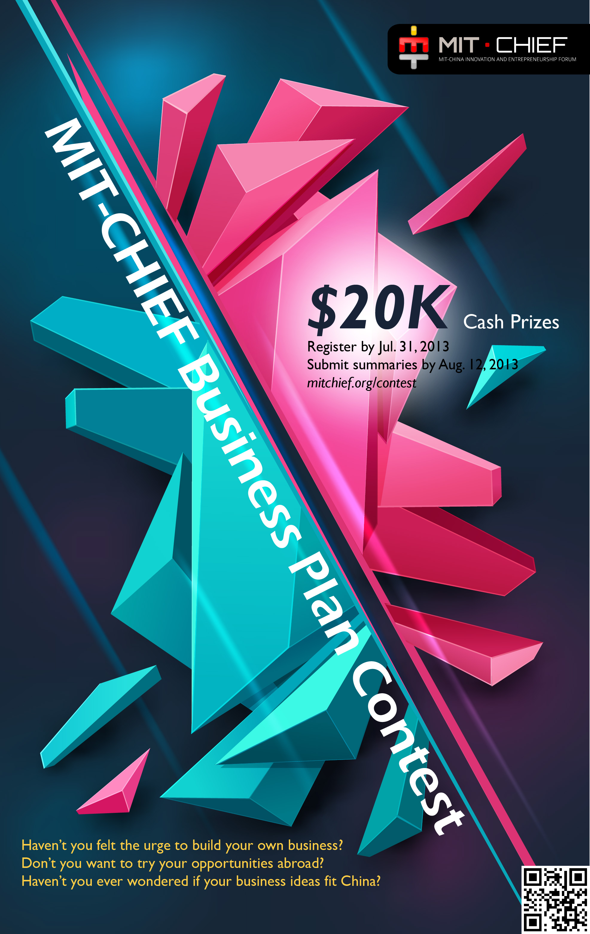The MIT-CHIEF (MIT-China Innovation and Entrepreneurship Forum) Business Plan Contest is calling for business plans from a broad spectrum of high tech areas, including web/IT, Healthcare, CleanTech, Products/Services, and Social Impact. Finalists will be awarded cash prizes totaling $20,000, with no strings attached! Non-cash awards include mentorship services and China Trek to experience the real-world entrepreneurship.